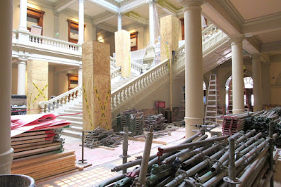 | Unfortunately, the entire Capitol is under renovation and this is what the inside looked like. Lou was surprised they let us inside without hard hats. All of the displays were removed and most of the building was inaccessible. There was one service elevator in working order. Oh, well, at least I was inside and that counts. |